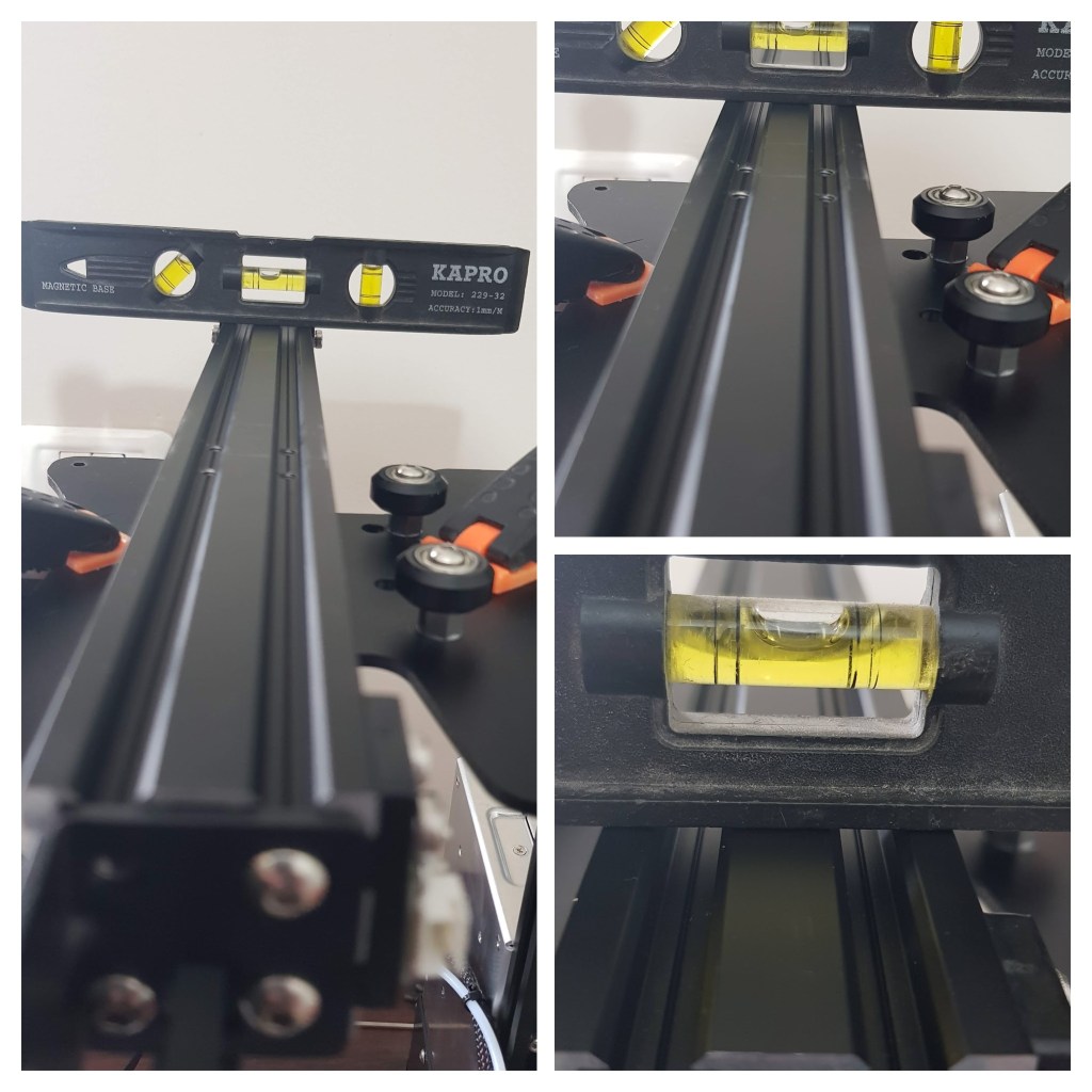 לא יודע איך הצלחתי להתאפק ולא להישאר ער כל הלילה אבל עשיתי זאת וחיכיתי ליום שישי. יחד עם צפיה בסרטונים מתאימים הצלחתי לקבל מדפסת מהודקת, עם פרופילים ניצבים 90 מעלות האחד לשני וגלגלים שמחליקים בצורה מדויקת על המסלול. את הסרטון הכי טוב (לדעתי כמובן) מצאתי בערוץ של Tomb of 3D Printed Horrors ניתן לעקוב אחרי סדרת הפעולות שלו ולבצע במקביל אליו.